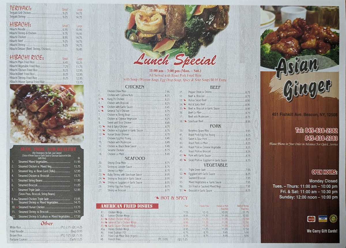 Welcome to Asian Ginger, a hidden gem nestled in Beacon, NY, at 451 Fishkill Ave. This charming eatery seamlessly combines authentic Asian flavors with the warmth of a welcoming atmosphere. With a reputation built on years of dedication and quality, Asian Ginger has captured the hearts and taste buds of locals and visitors alike.